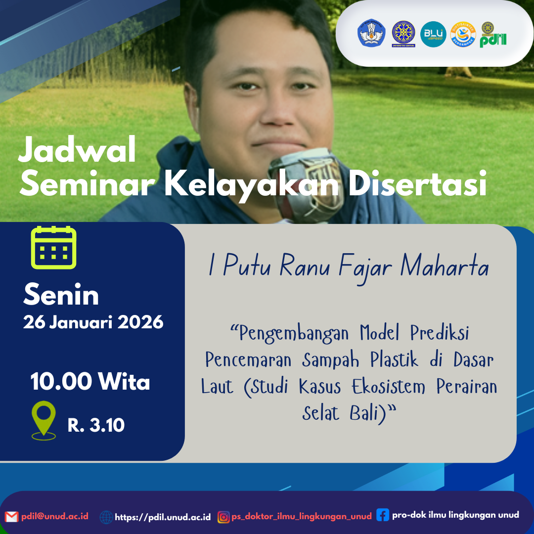 Jadwal Ujian Seminar Kelayakan Disertasi Mahasiswa PDIL a.n. I Putu Ranu Fajar Maharta